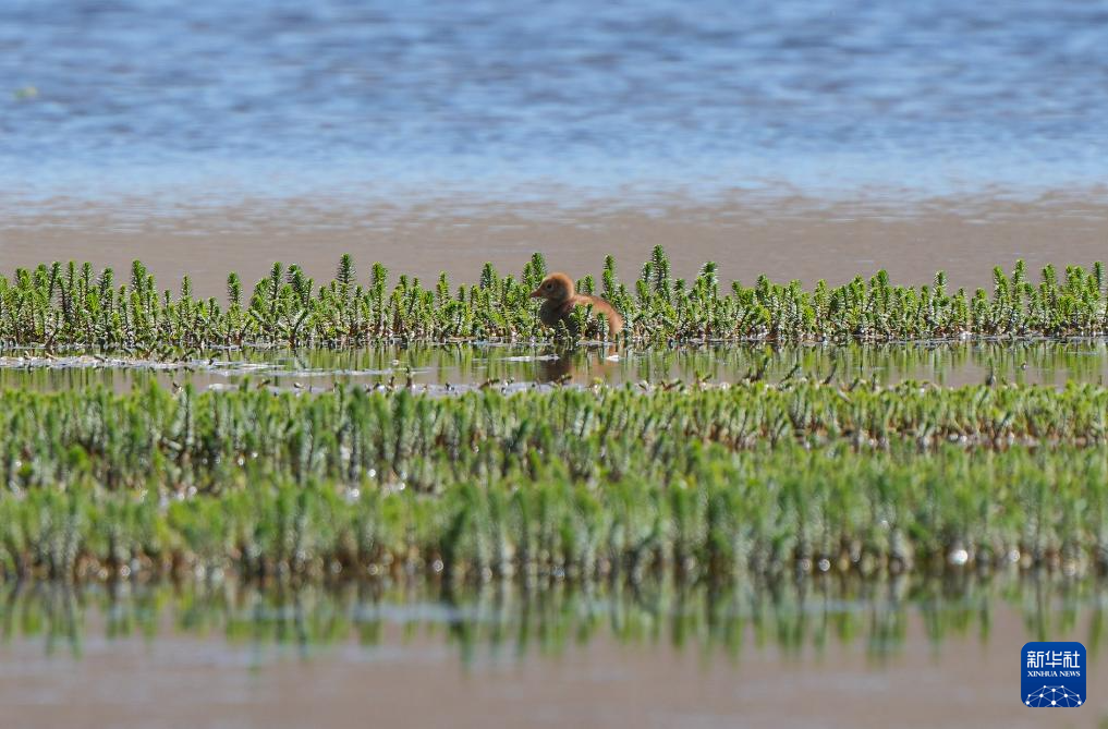 這是6月9日在西藏那曲市申扎縣一處濕地拍攝的黑頸鶴雛鳥。新華社記者 姜帆 攝