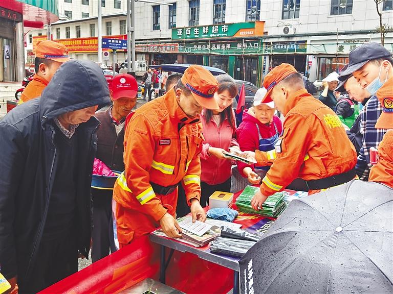 消防員發(fā)放防災(zāi)減災(zāi)知識手冊。記者 王雨霏 攝