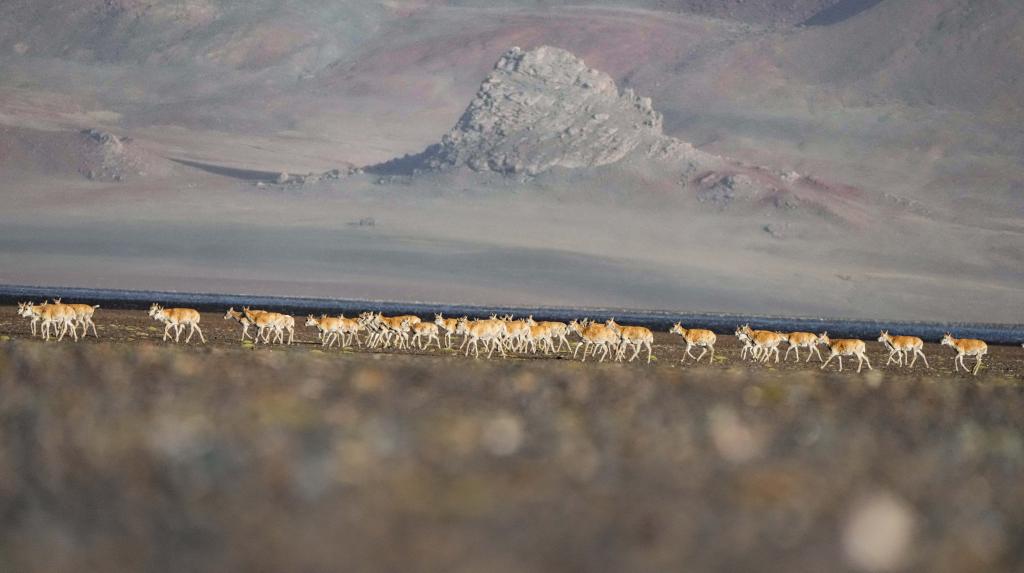 甜水河附近遷徙的藏羚羊(6月14日攝)。