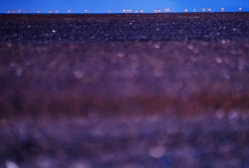 每年5月至7月,藏北羌塘國家級自然保護區(qū)內(nèi)的母藏羚羊進入遷徙繁殖季。數(shù)十萬只母羊,向著羌塘保護區(qū)深處的瑪爾蓋茶卡附近和玉龍河畔的產(chǎn)羔地遷徙,于此生下小羊羔后再回遷。