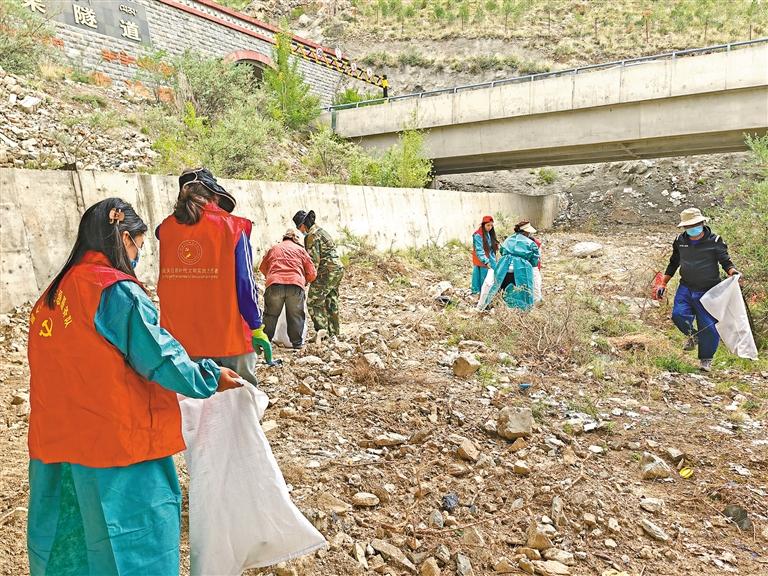 行動中,大家手持垃圾袋、清掃工具,各盡其責,對隧道下的公共林區(qū)、后山周邊、背街小巷等處的白色垃圾、建筑垃圾、生活垃圾進行集中清理。隨后,拉薩市政府國資委機關黨支部在社區(qū)開展了“環(huán)保綠色 擁抱未來”倡導綠色理念的宣傳活動,并向社區(qū)全體網格工作人員發(fā)放了日常工作所需的環(huán)保用品。