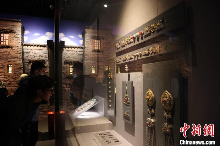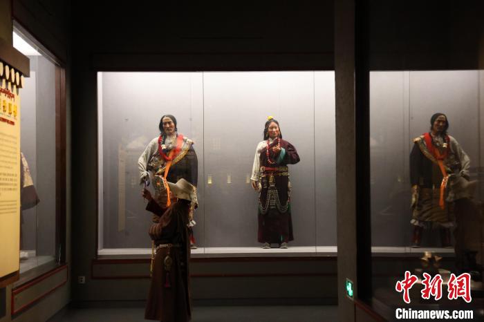 7月24日,參加“中國式現(xiàn)代化的萬千氣象·網(wǎng)絡(luò)名人青海行”活動(dòng)的網(wǎng)絡(luò)名人,抵達(dá)江河源頭青海玉樹藏族自治州,在玉樹州博物館一覽自然與人文之美。玉樹州博物館是玉樹地震災(zāi)后重建十大標(biāo)志性建筑之一,分為序廳、自然展區(qū)、人文展區(qū)、臨時(shí)展廳。其通過實(shí)物標(biāo)本等方式,展示了三江源和可可西里的野生動(dòng)物、草地、森林,以及玉樹州的歷史、建筑、服飾、飲食等。圖為玉樹州博物館內(nèi)的服飾文化展示。中新社記者 張?zhí)砀?攝