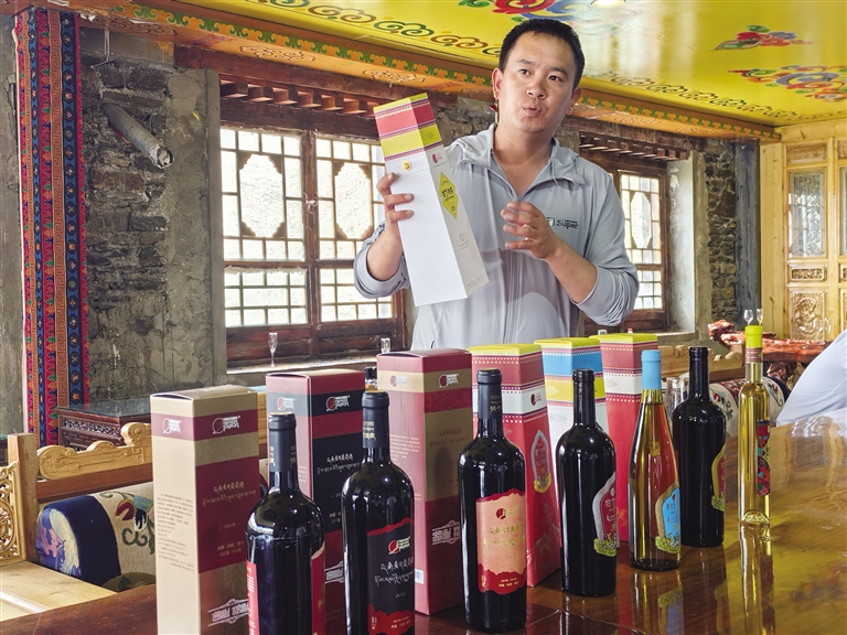 酒莊負責人介紹道:“我們的葡萄酒采用自產的高原葡萄品種釀制而成,具有獨特的風味和口感。近年來,隨著旅游業(yè)的發(fā)展,我們的葡萄酒也受到了越來越多游客的喜愛?!?/p>