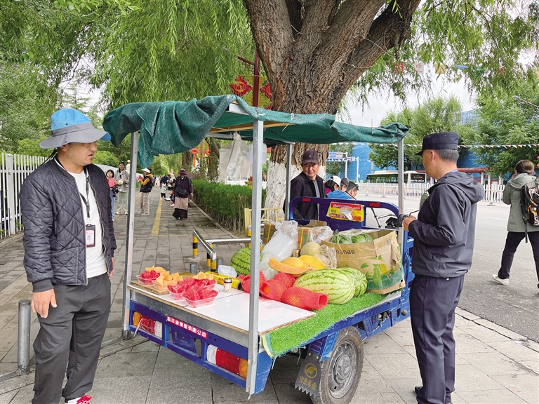 “我們從每日早上10點(diǎn)至晚上11點(diǎn),對布達(dá)拉宮南門、宗角祿康東門采取值班執(zhí)勤等方式進(jìn)行不間斷盯守,同時(shí)加強(qiáng)城管執(zhí)法大隊(duì)日常路段巡查力度,進(jìn)一步鞏固整治工作成效,提高監(jiān)管效率,形成規(guī)范化和長效化的城市管理機(jī)制,共創(chuàng)文明有序的市容環(huán)境。”布達(dá)拉宮周邊亂象專項(xiàng)整治工作專班成員常春告訴記者。
