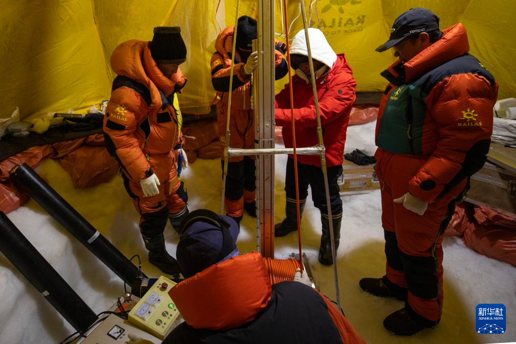 9月11日晚,由中國(guó)科學(xué)院青藏高原研究所副所長(zhǎng)徐柏青研究員帶領(lǐng)的科考團(tuán)隊(duì)在普若崗日冰原頂部海拔6100米的“Dome.C”點(diǎn)開機(jī)鉆取冰芯。