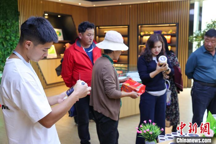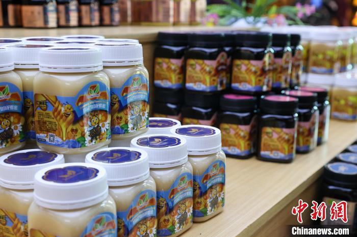 9月24日,記者跟隨2024年青海湖生態(tài)保護能力提升培訓(xùn)班來到青海省海南藏族自治州貴德縣青海青藏蜜蜂良種養(yǎng)殖場,展臺上擺放著各類藏蜜。中新社記者 薛蒂 攝