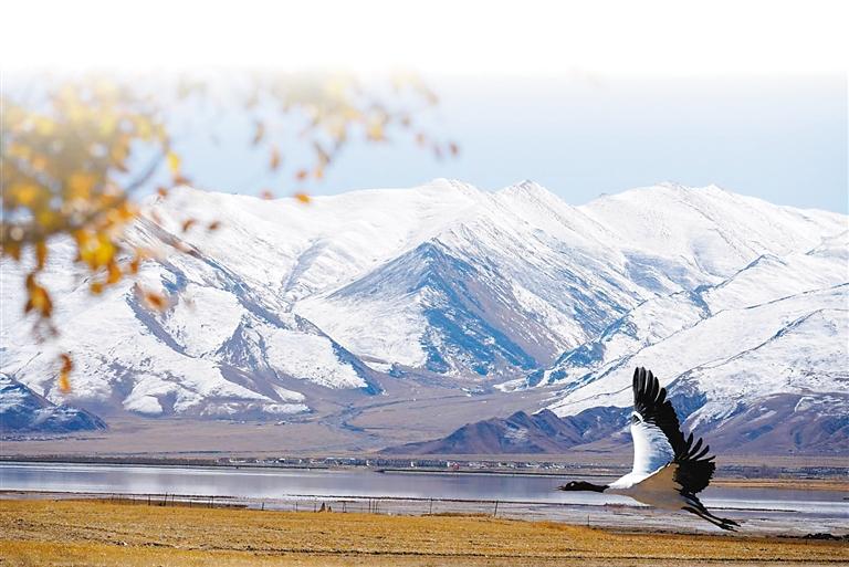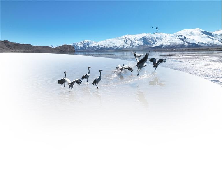 高原精靈黑頸鶴是世界上唯一一種生長、繁殖在高原的鶴類。它們體態(tài)優(yōu)美,身姿挺拔,羽毛黑白相間,頭部和頸部那一抹黑色猶如佩戴的神秘面紗,增添了幾分高貴與神秘。每年10月中下旬,它們都會展開一場跨越千里的越冬之旅。它們飛越千山萬水,來到西藏的濕地、草原和農(nóng)田感受溫暖、尋覓食物,續(xù)寫著生命的傳奇。