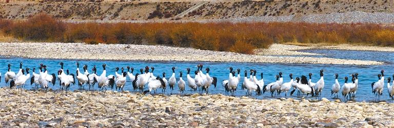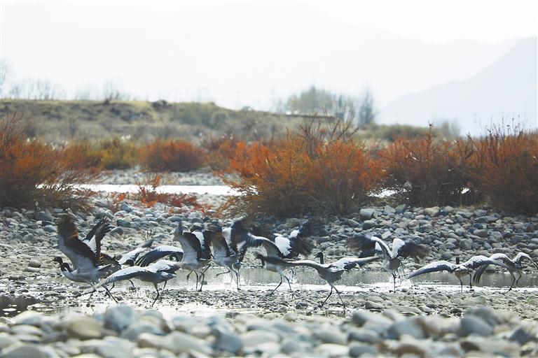 如今,一批又一批黑頸鶴從四川、青海等地啟程,歷經(jīng)近千公里的長途跋涉,紛紛抵達西藏各越冬地,開啟他們的越冬生活。