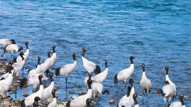 黑頸鶴,作為國家一級保護動物,藏語名稱為“沖沖”,享有“吉祥鳥”的美譽。這種珍稀鶴類主要棲息于海拔2500米至5000米的高原、草甸、沼澤地帶,是鶴類中唯一能在高原地區(qū)完成繁殖和越冬的鶴類。獨特的生態(tài)習性,使其被譽為“高原仙鶴”,成為鶴類中當下唯一的高原居民。