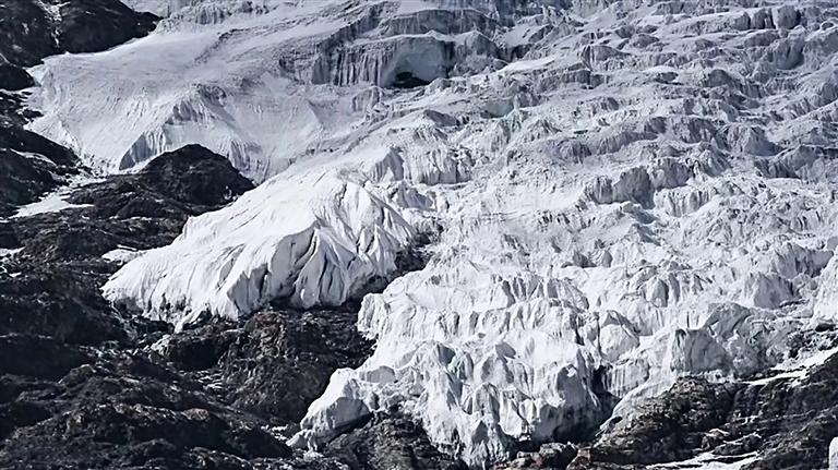 感受完藏歷新年的歡樂氛圍后,便可繼續(xù)前往卡若拉冰川??ㄈ衾ㄊ俏鞑鼐嚯x公路最近的冰川,也是電影《紅河谷》的取景地。盡管已到2月末、3月初,但由于海拔較高,冰川受氣溫回暖的影響較小。在距離卡若拉冰川不遠(yuǎn)處,有一處小眾打卡點(diǎn)——恰央措,近年來受到越來越多人的關(guān)注。恰央措的藍(lán)冰呈深藍(lán)色,冰下布滿密密麻麻的白色網(wǎng)狀紋路,景象十分壯觀,拍照效果極佳。