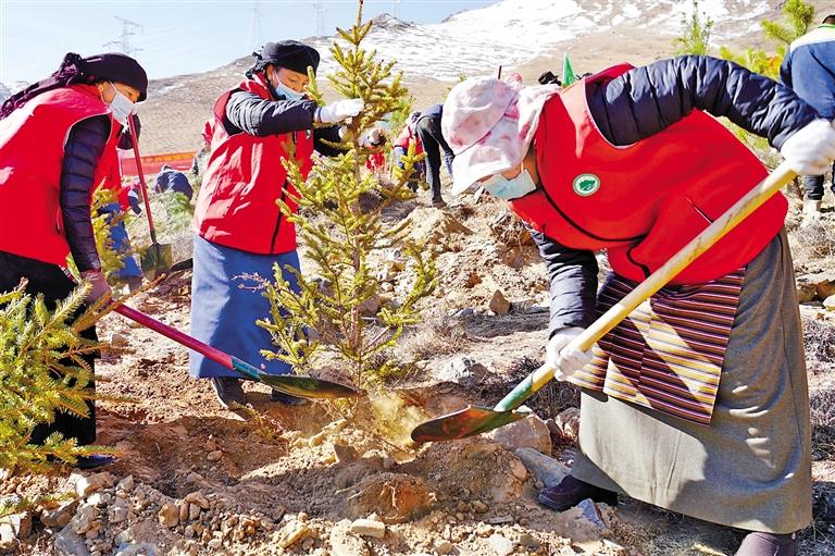今年3月12日是第47個(gè)植樹節(jié)。當(dāng)天,西藏各地舉行了植樹活動(dòng),干部群眾紛紛走進(jìn)綠化區(qū)、綠化點(diǎn)參加義務(wù)植樹活動(dòng)?;顒?dòng)現(xiàn)場(chǎng),大家熱情高漲,分工協(xié)作,配合默契。有的揮鍬鏟土,有的扶苗培土,有的踩實(shí)固根,還有的提桶澆灌,各個(gè)環(huán)節(jié)緊密銜接,現(xiàn)場(chǎng)一片繁忙。