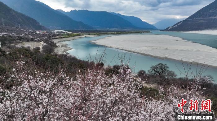 3月28日,西藏自治區(qū)林芝市,雅魯藏布江碧綠的江水與岸畔的桃花、遠處的雪山相映成趣,春意盎然。雅魯藏布大峽谷全長504.6公里,最深處6009米,被認為是世界上長度最長、深度最深的大峽谷。中新社記者 馬銘言 攝