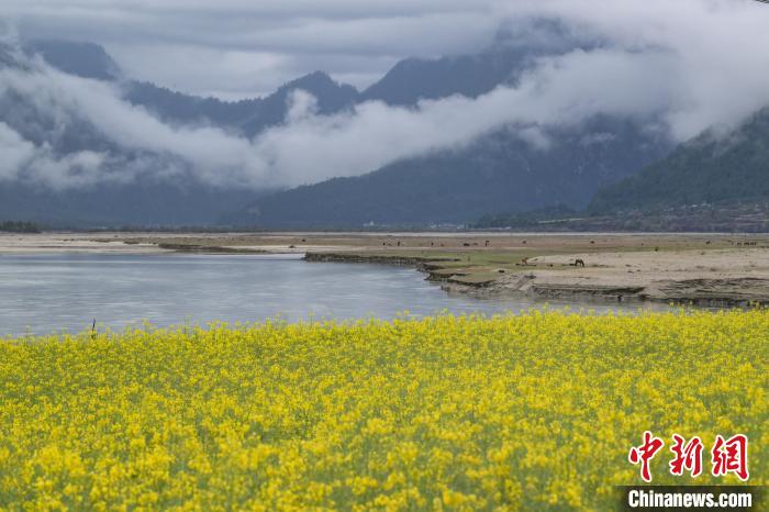 4月4日,西藏林芝市波密縣易貢鄉(xiāng)在雨后迎來絕美景致。云霧繚繞在群山之間,金黃的油菜花與森林、易貢湖、藏式民居、碧綠的青稞田相互映襯,宛如仙境。中新社記者 貢嘎來松 攝