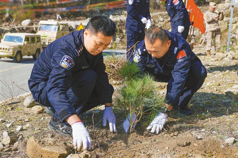 活動現(xiàn)場,民警與群眾組成協(xié)作小組,揮鍬鏟土、扶苗培土,嚴格按照技術(shù)標(biāo)準(zhǔn)栽種松、柏等樹苗。經(jīng)過數(shù)小時奮戰(zhàn),數(shù)百株樹苗迎風(fēng)挺立,為高原大地披上嶄新綠裝。