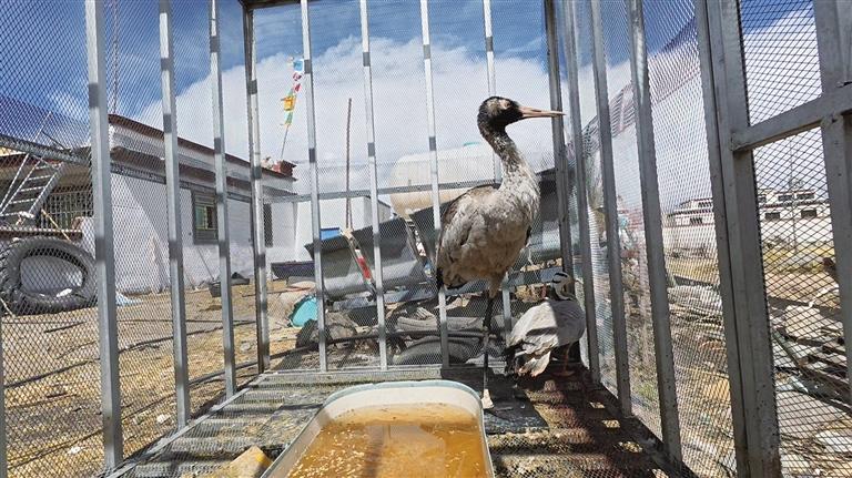 每年越冬季最讓頓珠次仁擔(dān)憂(yōu)的并不是天氣的惡劣,而是每年都會(huì)有受傷的黑頸鶴。今年年初,兩只受傷的黑頸鶴先后出現(xiàn)在他的視野中,他帶回家后精心地照顧著它們,為它們準(zhǔn)備溫暖舒適的棲息之所,每日提供新鮮、可口的食物,還時(shí)刻關(guān)注著它們的傷勢(shì)變化。