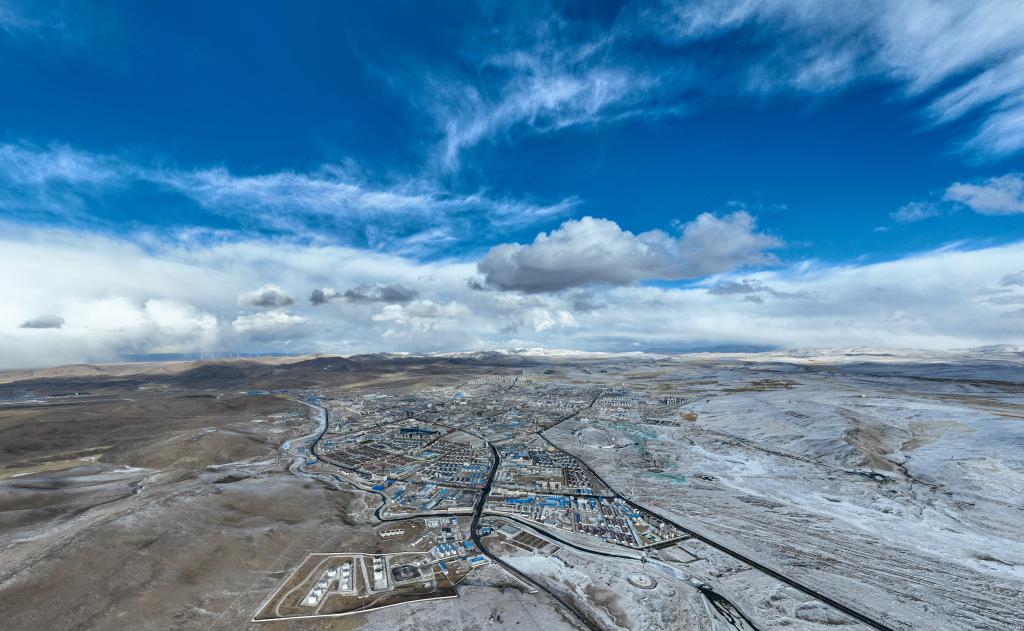 2025年2月12日拍攝的那曲市城區(qū)(無人機照片)。新華社記者晉美多吉攝