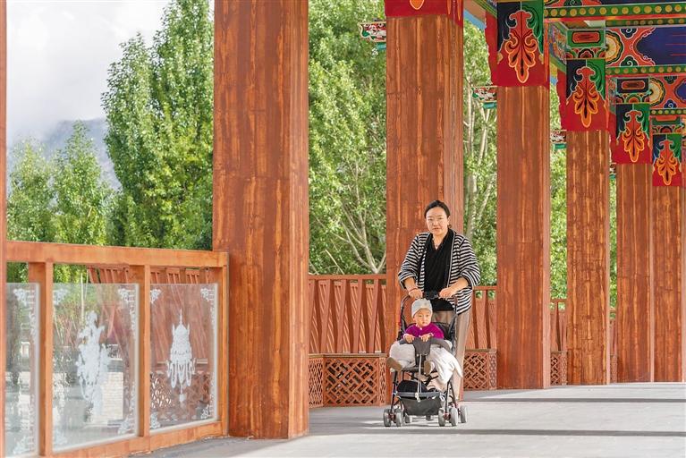 市民在兩島內(nèi)河綠色生態(tài)廊道提升工程仙足廊橋散步。 新華社記者 旦增尼瑪曲珠 攝