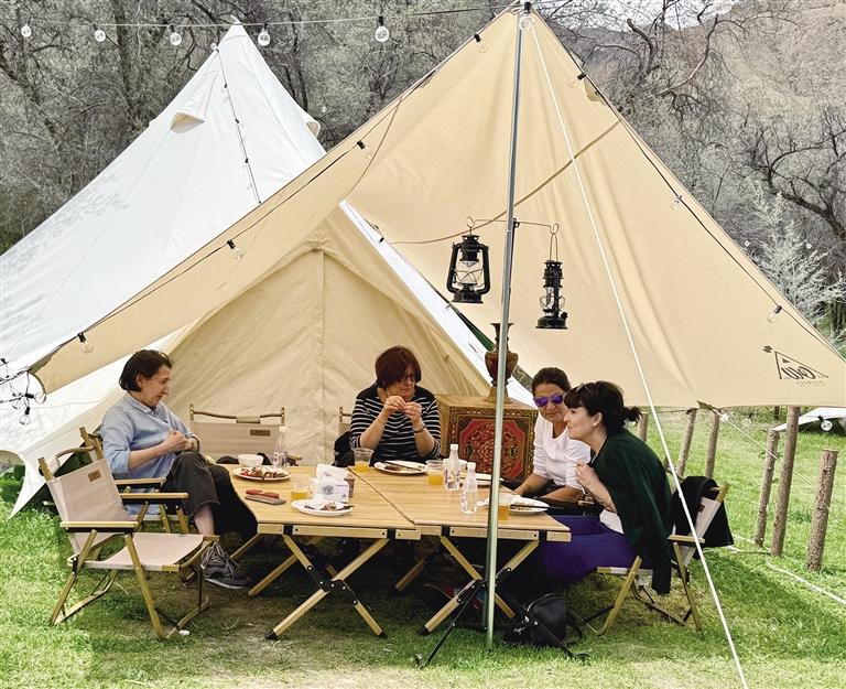 李女士說:“林卡中有一條小河流穿過,大人孩子可以在這里打水仗、坐船,玩累了還可以在這里燒烤,這就是我喜歡這里的原因?!背水?dāng)?shù)厝?,還有很多游客喜歡來(lái)這里體驗(yàn),喝一杯啤酒,跳一曲鍋莊舞,感受一下當(dāng)?shù)卮緲愕拿耧L(fēng)。
