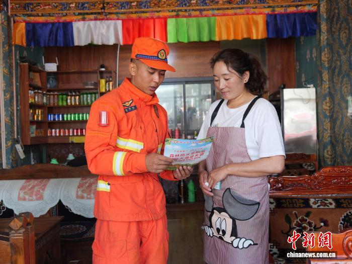 圖為消防隊員正在深入轄區(qū)沿街“入戶式”宣講防災(zāi)減災(zāi)知識。林芝市森林消防支隊供圖