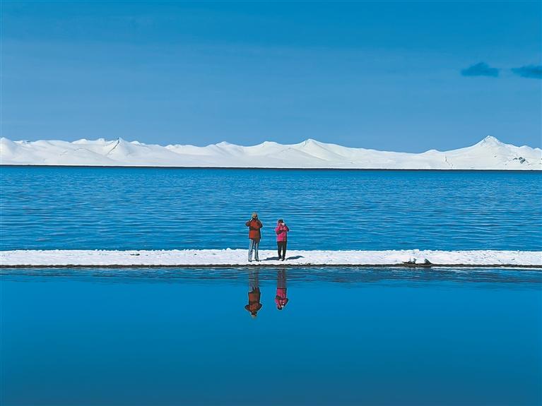 國慶中秋假期,山南市浪卡子縣普莫雍錯(cuò)景區(qū)迎來旅游高峰。雪后初霽的湖面如藍(lán)寶石般鑲嵌在群山之間,以雄渾壯闊的自然之美震撼人心。