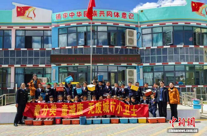 圖為阿里地區(qū)參與“無(wú)廢校園”建設(shè)小衛(wèi)士和相關(guān)工作人員合影。阿里地區(qū)生態(tài)環(huán)境局 供圖