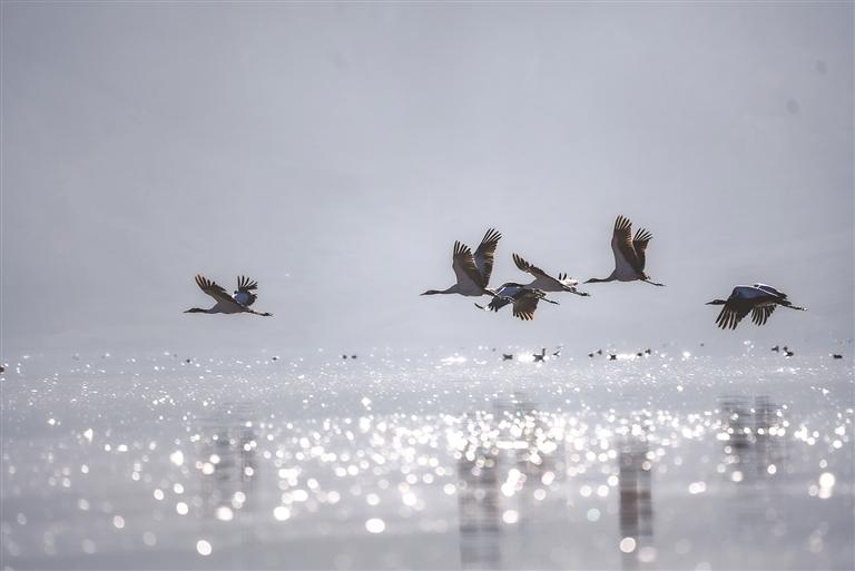 近日,被譽為 “高原仙子”的國家一級保護動物黑頸鶴如期飛抵拉薩市林周縣卡孜水庫越冬,與斑頭雁、赤麻鴨等水鳥共同構成高原濕地生態(tài)畫卷。
