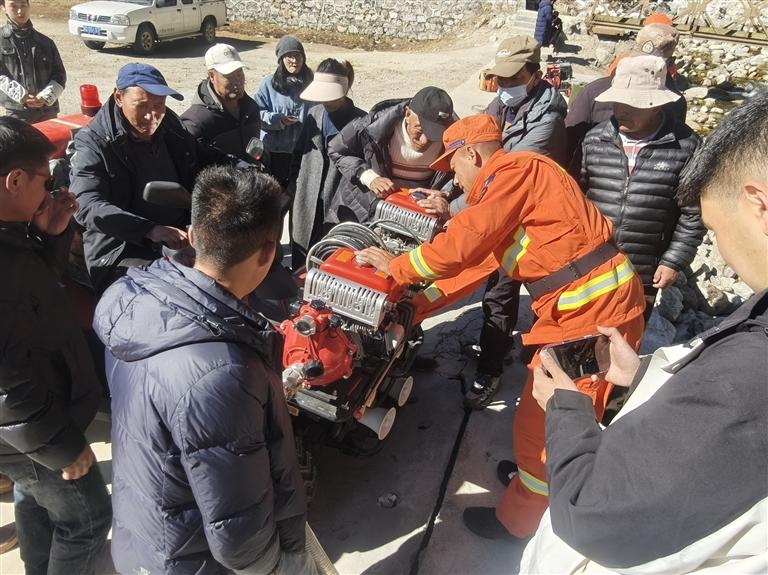 在山地水泵架設(shè)與撤收等核心實操環(huán)節(jié),消防救援人員結(jié)合當(dāng)?shù)厣降仄鸱⑵露容^大的地形特征,現(xiàn)場演示管帶鋪設(shè)技巧、水泵啟動流程、壓力調(diào)節(jié)要點(diǎn),并針對參訓(xùn)人員提出的“水泵故障應(yīng)急處置”“復(fù)雜地形下管帶防纏繞技巧”“緊急避險撤離路線選擇原則”等實際問題逐一解答。參訓(xùn)人員全程專注投入,主動參與實操演練,相互交流學(xué)習(xí)心得,現(xiàn)場形成“比學(xué)趕超”的濃厚氛圍,確保每一項技能要點(diǎn)都學(xué)深悟透、練熟用活。