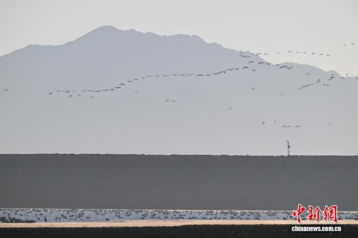 1月19日,西藏拉薩市林周縣黑頸鶴自然保護(hù)區(qū)內(nèi),成群候鳥在此越冬棲息。這里的濕地、農(nóng)田與水庫構(gòu)成絕佳棲息地,黑頸鶴、斑頭雁、赤麻鴨等萬余只候鳥在此集結(jié)。它們或凌空盤旋、或田間覓食,繪就高原生態(tài)畫卷。中新社記者 貢嘎來松 攝
