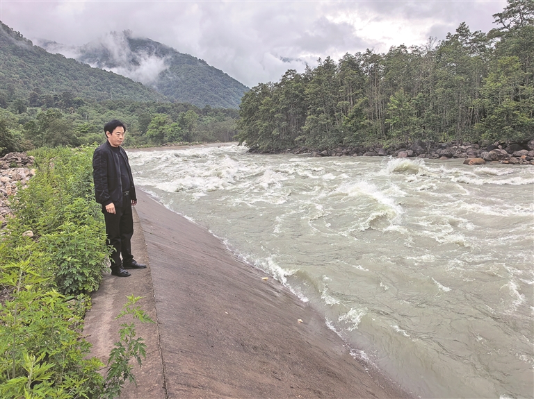圖為林芝市墨脫縣格當鄉(xiāng)的巡河隊員在巡查河流。記者 王敏 通訊員 郎玲 攝