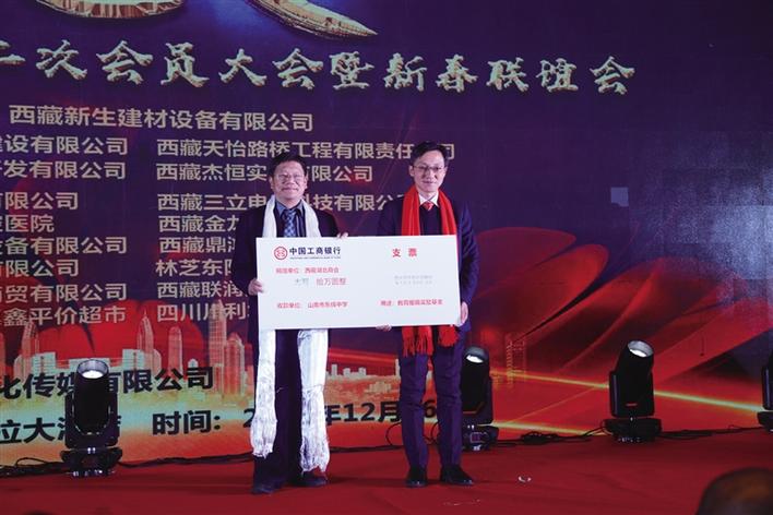 活動尾聲,西藏湖北商會現(xiàn)場為山南市東輝中學捐贈教育援藏獎勵基金10萬元,用以資助山南市教育事業(yè)的發(fā)展。