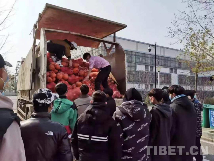 春節(jié)期間,有62名西藏學生的家長不遠萬里到武漢看望孩子,因疫情滯留在學校周邊酒店。家長們聽說這件事后十分感動,紛紛自發(fā)到現(xiàn)場為學校搬運新鮮蔬菜。