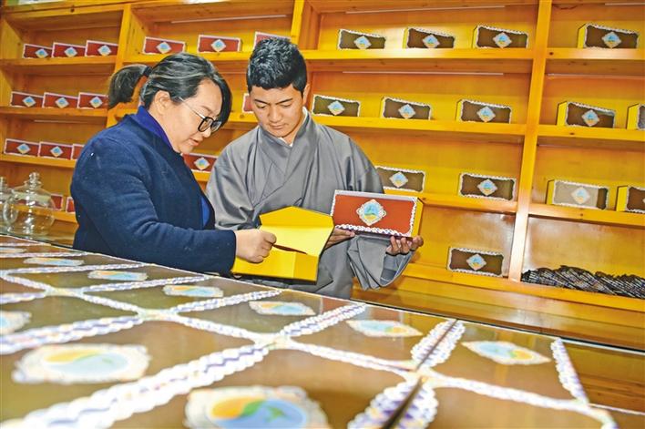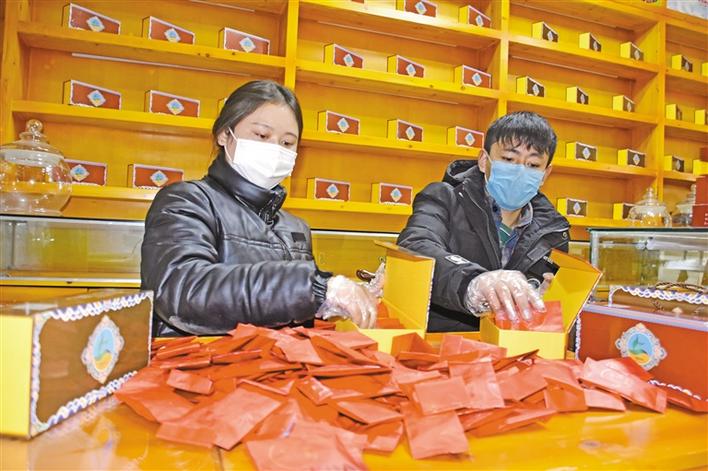 穹布倉大學生創(chuàng)業(yè)者正在包裝藏藥蟲草茶。