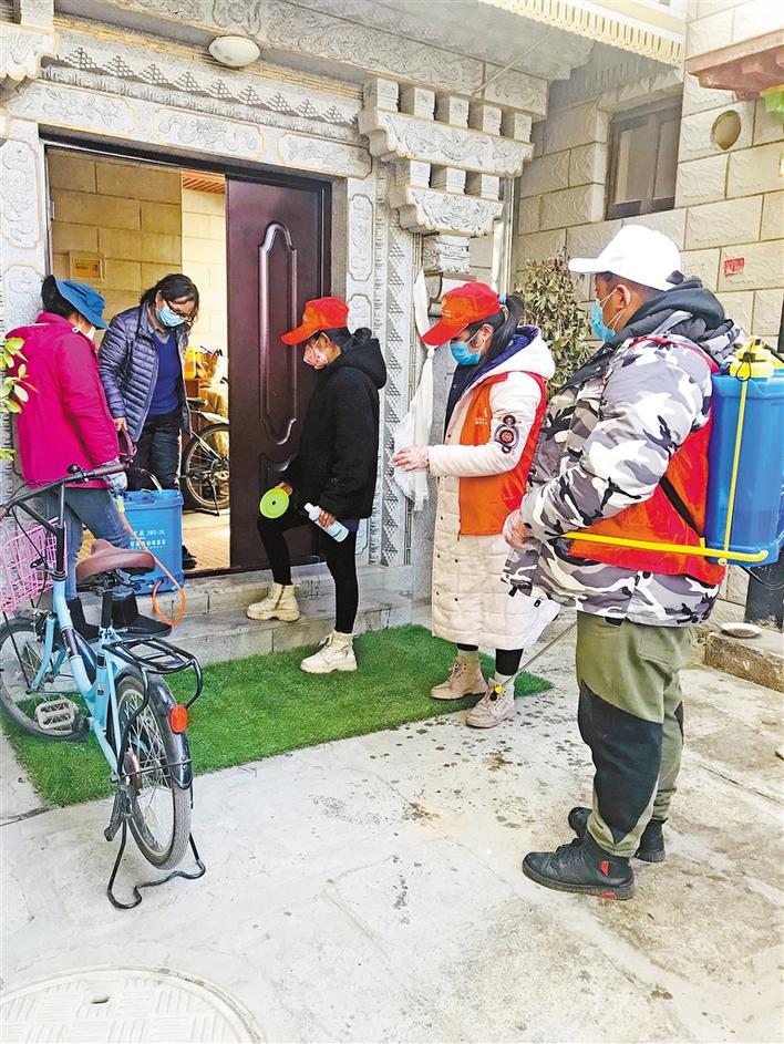 玉吉組織志愿者前往拉薩市民家中免費開展消毒工作。