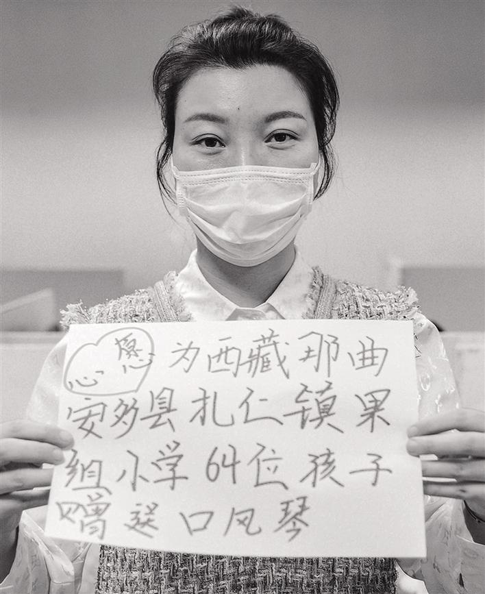 3月6日,為了讓奮戰(zhàn)在抗疫一線的英雄感受到社會的敬意,阿里巴巴天天正能量聯(lián)合全國媒體發(fā)起了“共圓英雄夢”活動(dòng)。記者詢問柏雪有什么心愿,她說:“我想給西藏那曲市安多縣扎仁鎮(zhèn)果組小學(xué)的64名孩子送口風(fēng)琴!”