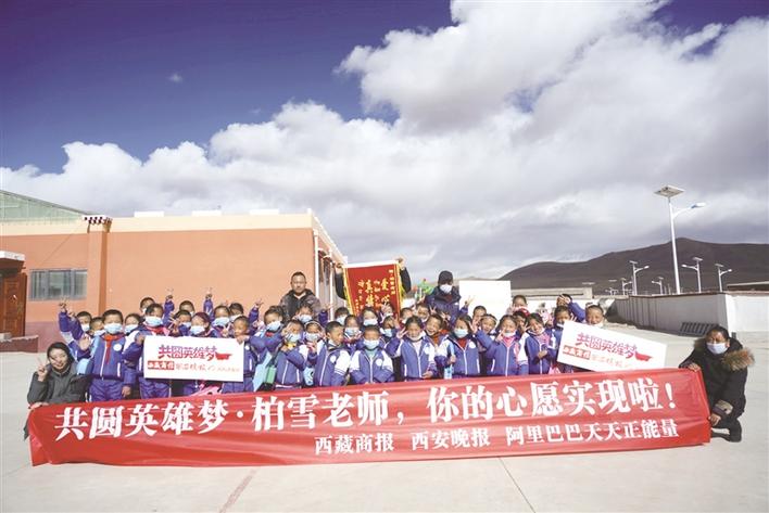 在阿里巴巴天天正能量聯(lián)合西藏商報(bào)、西安晚報(bào)等全國(guó)媒體舉辦的“共圓英雄夢(mèng)”活動(dòng)中,西安90后音樂(lè)教師柏雪許下愿望:為西藏自治區(qū)那曲市安多縣扎仁鎮(zhèn)果組小學(xué)64位孩子贈(zèng)送口風(fēng)琴。13日下午4時(shí)許,記者一行帶著64把口風(fēng)琴,足球、籃球、跳繩、羽毛球等體育用品及柏雪老師錄好的口風(fēng)琴教學(xué)視頻,抵達(dá)那曲市安多縣扎仁鎮(zhèn)果組小學(xué),為孩子們上了一堂別開(kāi)生面的音樂(lè)課。