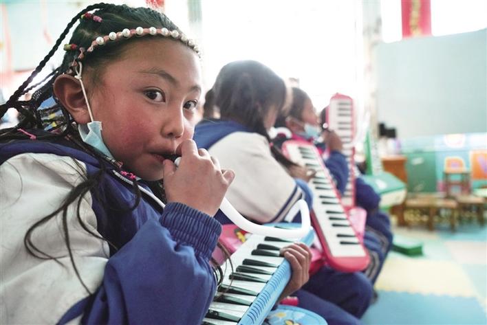 口風(fēng)琴擁有良好的和聲能力,廣泛應(yīng)用于各類音樂(lè)中。但是,對(duì)于果組小學(xué)的孩子們來(lái)說(shuō),這是他們第一次見(jiàn)到口風(fēng)琴。布扎西是該小學(xué)三年級(jí)的一名小學(xué)生,他是校園“小歌星”,每年六一兒童節(jié)學(xué)校舉行文藝匯演時(shí),他都要演唱自己的拿手歌曲——《我的家鄉(xiāng)》。第一次見(jiàn)到口風(fēng)琴,布扎西非常開(kāi)心:“謝謝柏雪老師送給我們的禮物,我以后會(huì)好好學(xué)習(xí),爭(zhēng)取早日吹奏《小星星》!”