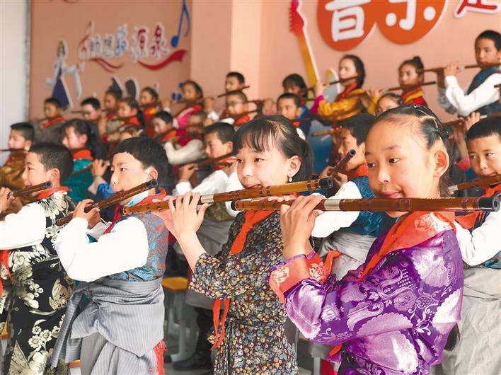 圖為孩子們在西藏自治區(qū)青少年宮學習樂器。記者 央金 攝
