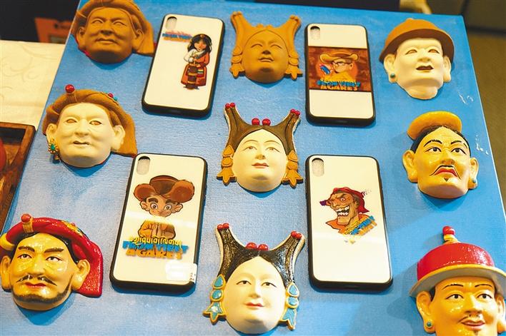 圖為吉祥彩幔研發(fā)的民俗面具和文創(chuàng)手機(jī)殼。
