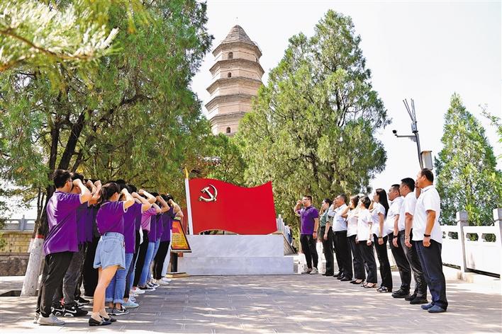 臨近“七一”,革命圣地延安的黨員干部紛紛來(lái)到紅色景區(qū),舉行主題黨課、現(xiàn)場(chǎng)教學(xué)、重溫入黨誓詞等活動(dòng)。