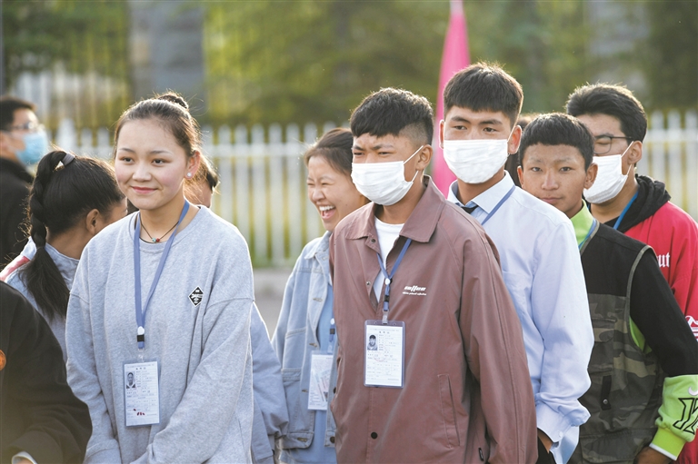 當日上午8時,考生統(tǒng)一乘坐拉薩市公交公司高考愛心接送車來到拉薩中學考點。在疫情防控常態(tài)化背景下,考生手拿準考證、身份證,戴著口罩,排隊測量體溫之后,有序進入考場。為應對突發(fā)狀況,考點外設置了隔離區(qū),并有醫(yī)療人員駐守。參加高考的考生之間也互相加油打氣,考生拉巴頓珠說:“祝愿大家都能好好發(fā)揮,考上自己心儀的學校。”