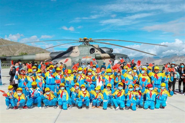 飛行訓練結束后,駐地小學學生為飛行員獻上鮮花?!袄蠋?,飛行員們可真酷,我也想成為這么酷的人。”看著飛行員們,學生小卓瑪拉著老師偷偷說道。
