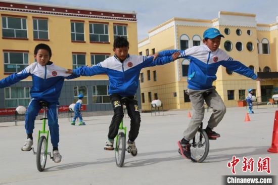 圖為鄉(xiāng)村學(xué)校少年宮的孩子們正在騎獨(dú)輪車(chē)?!〔抛尡?攝