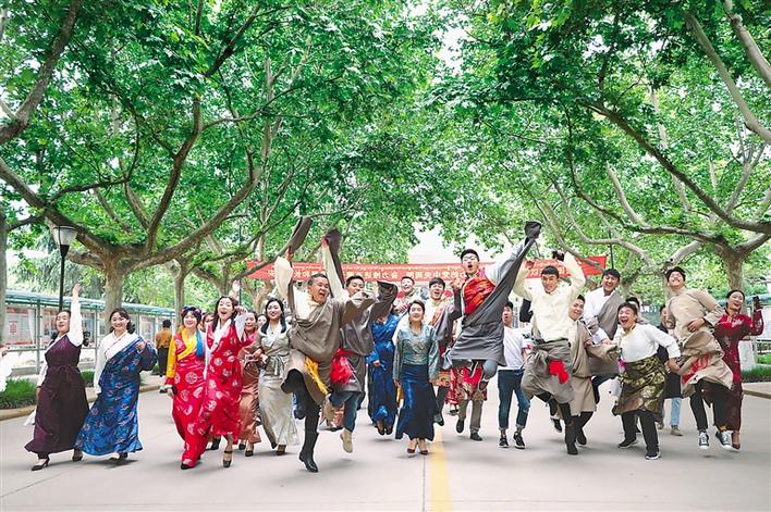 畢業(yè)后的西藏民族大學(xué)2018屆的學(xué)生們走在校園的林蔭道上。通訊員 恰多 攝
