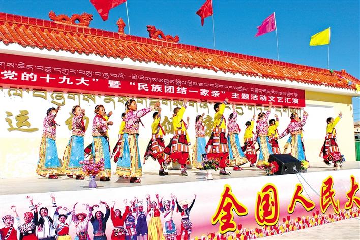 阿里地區(qū)小學(xué)開展“民族團(tuán)結(jié)一家親”主題活動(dòng)文藝匯演。(圖片由阿里地區(qū)民宗局提供)