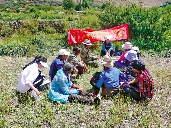 圖為西藏山南市錯(cuò)那縣委組織部部務(wù)會(huì)成員深入田間地頭對(duì)農(nóng)牧民黨員開展黨課教育。次仁片多 索朗瓊珠 通訊員 李蒙 攝