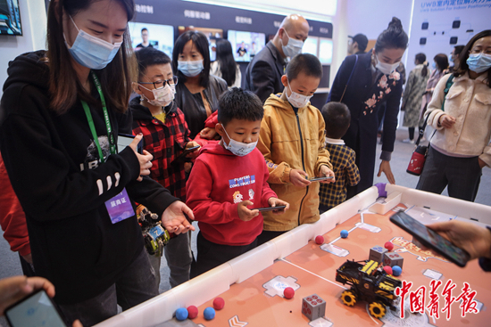 11月1日,山西太原,中國(太原)人工智能大會主題展覽現(xiàn)場,一家主打人工智能和機器人的高科技創(chuàng)新公司研發(fā)的機器人競技類游戲吸引了許多小朋友駐足體驗。10月31日,中國(太原)人工智能大會舉辦,大會主題展覽同步舉行,40余個展位集中展示當前人工智能產(chǎn)業(yè)核心技術(shù)、產(chǎn)品和創(chuàng)新成果。