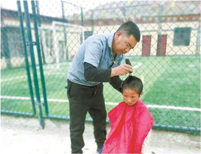 才旦多吉每?jī)芍芙o學(xué)生洗一次澡,每個(gè)月給他們理一次發(fā)。他自己買了理發(fā)工具,研究怎樣剪出孩子們喜歡的發(fā)型,一開始理出的頭發(fā)總是不整齊,想給學(xué)生做個(gè)洋氣的發(fā)型,也總是做得奇形怪狀。后來理發(fā)的次數(shù)多了,水平就提升了。才旦多吉笑稱自己是“鄉(xiāng)村版的托尼老師”。