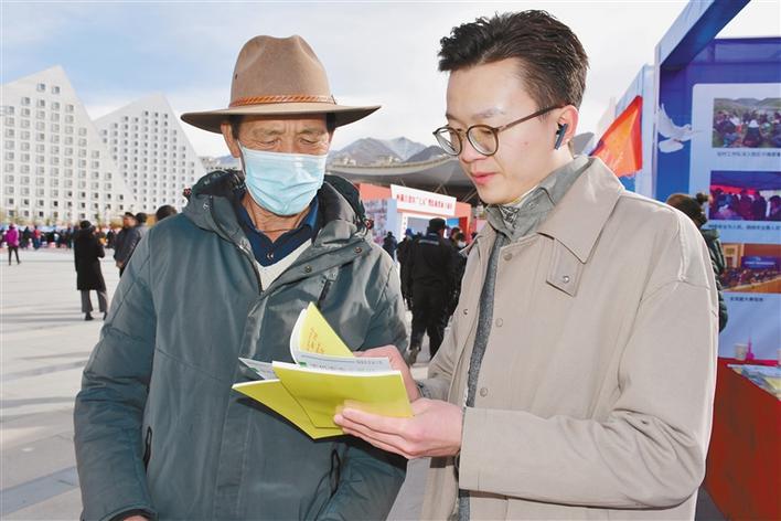 西藏人民檢察院工作人員為群眾解答法律問題。王杰學(xué) 王雪 攝