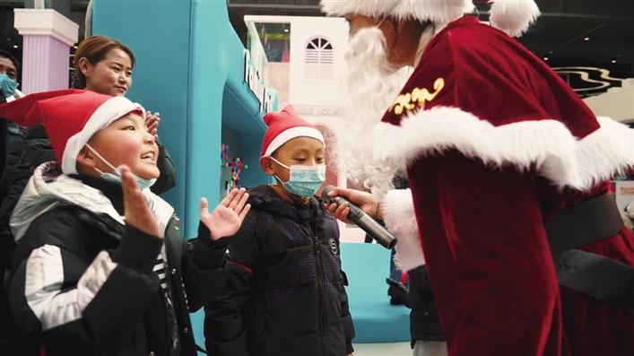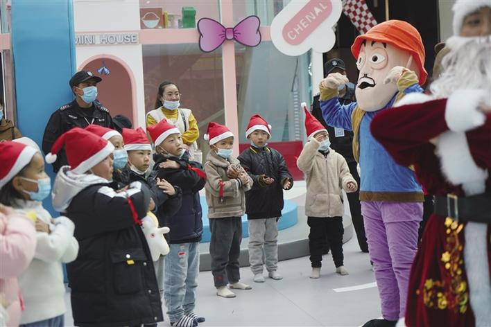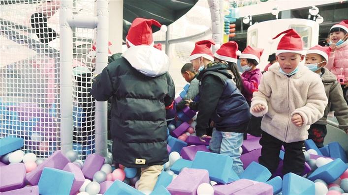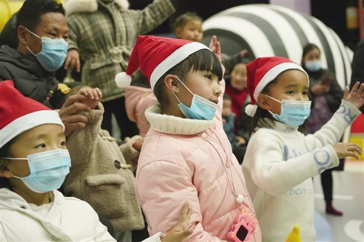 旋轉(zhuǎn)木馬、淘氣堡、滑梯……7歲的丹增達色玩得小臉紅撲撲,她告訴記者,這是她第一次來第三極歡樂世界,能和這么多小伙伴一起玩耍,真得很開心?!敖裉煊羞@么多叔叔阿姨們陪我們一起唱歌、跳舞,還送了我們小禮物,我很喜歡。”丹增達色笑著說。