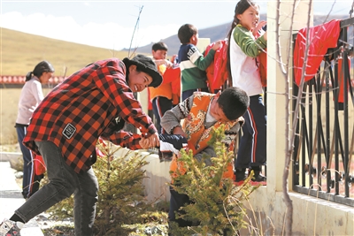 “林瑤可是我們學校的寶貝,既是開心果,又是救火隊員。開學時,六年級缺數學教師,我就讓她頂上去了。現在,除藏語文外,林瑤什么課都教過,每周要上近30節(jié)課。我們這里海拔4300米,高寒缺氧,但她不缺精神!”說起林瑤,吉尼賽第二寄宿學校校長索南鬧吾不由得豎起了大拇指。